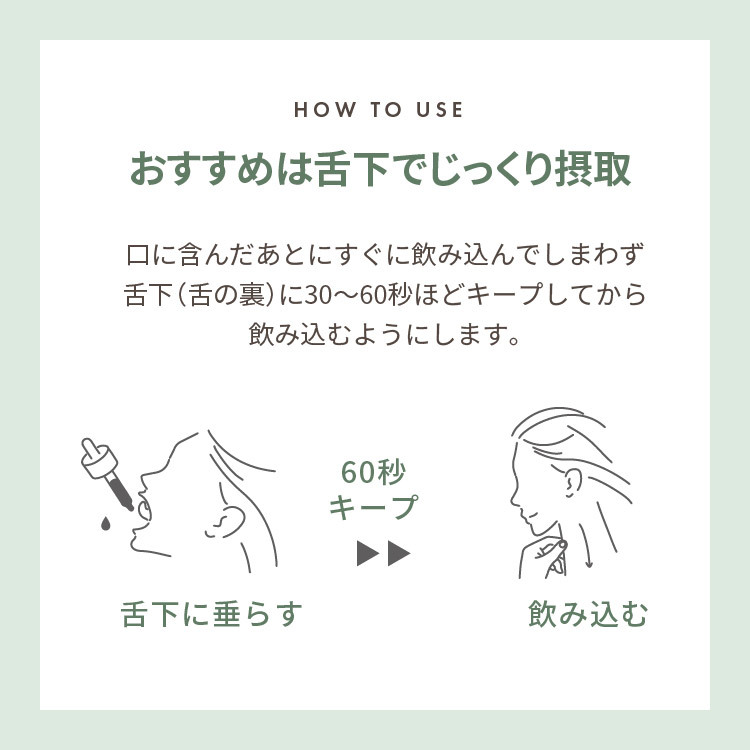 舌下(舌の裏)にスポイトで垂らします。