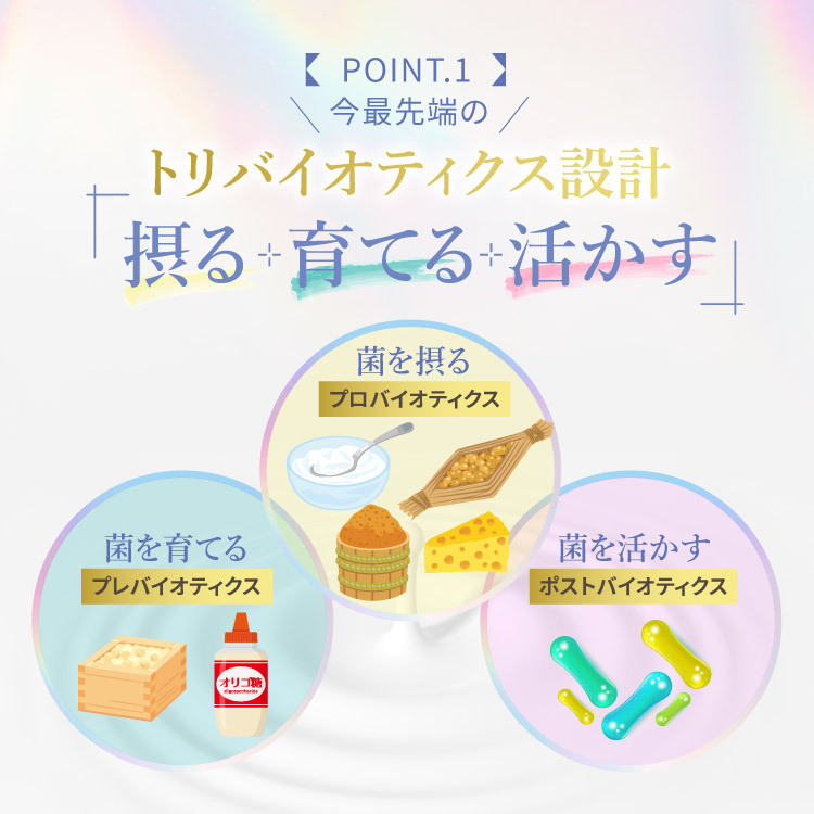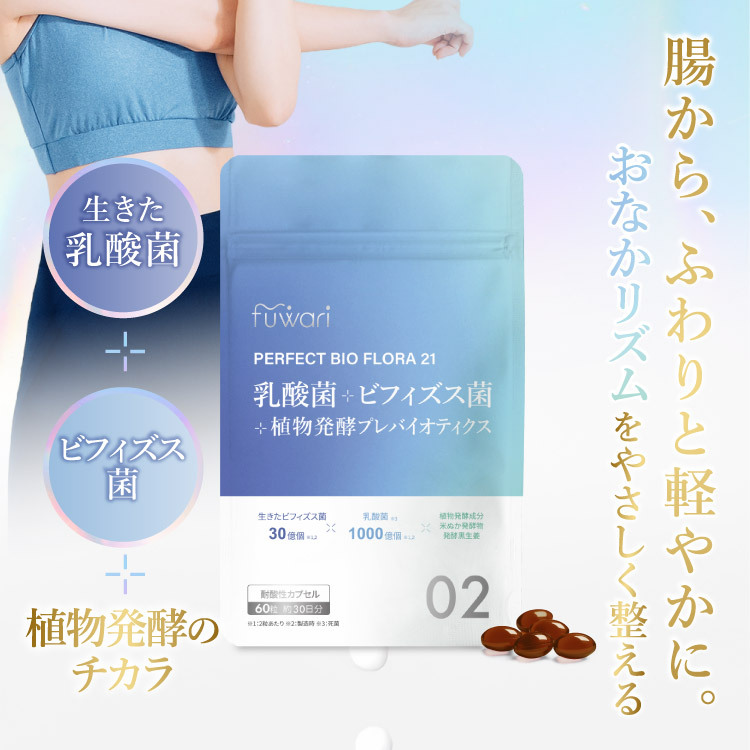 生きた乳酸菌&ビフィズス菌に、植物発酵のチカラをプラス。 すっきり、軽やか。腸からはじまる“心地よいリズム”を応援します。